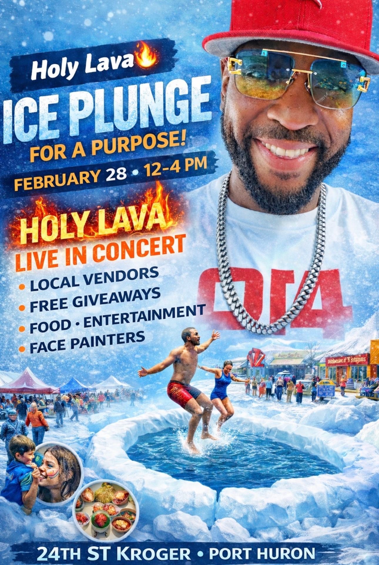 HOLY LAVA π₯ AND FRIENDS ARE DOING ICE PLUNGE! IN THE SOUTHWEST CORNER OF THE KROGER PARKING LOT!π IN THE OPEN GRASS LOT WEST OF H&R BLOCK!! π
