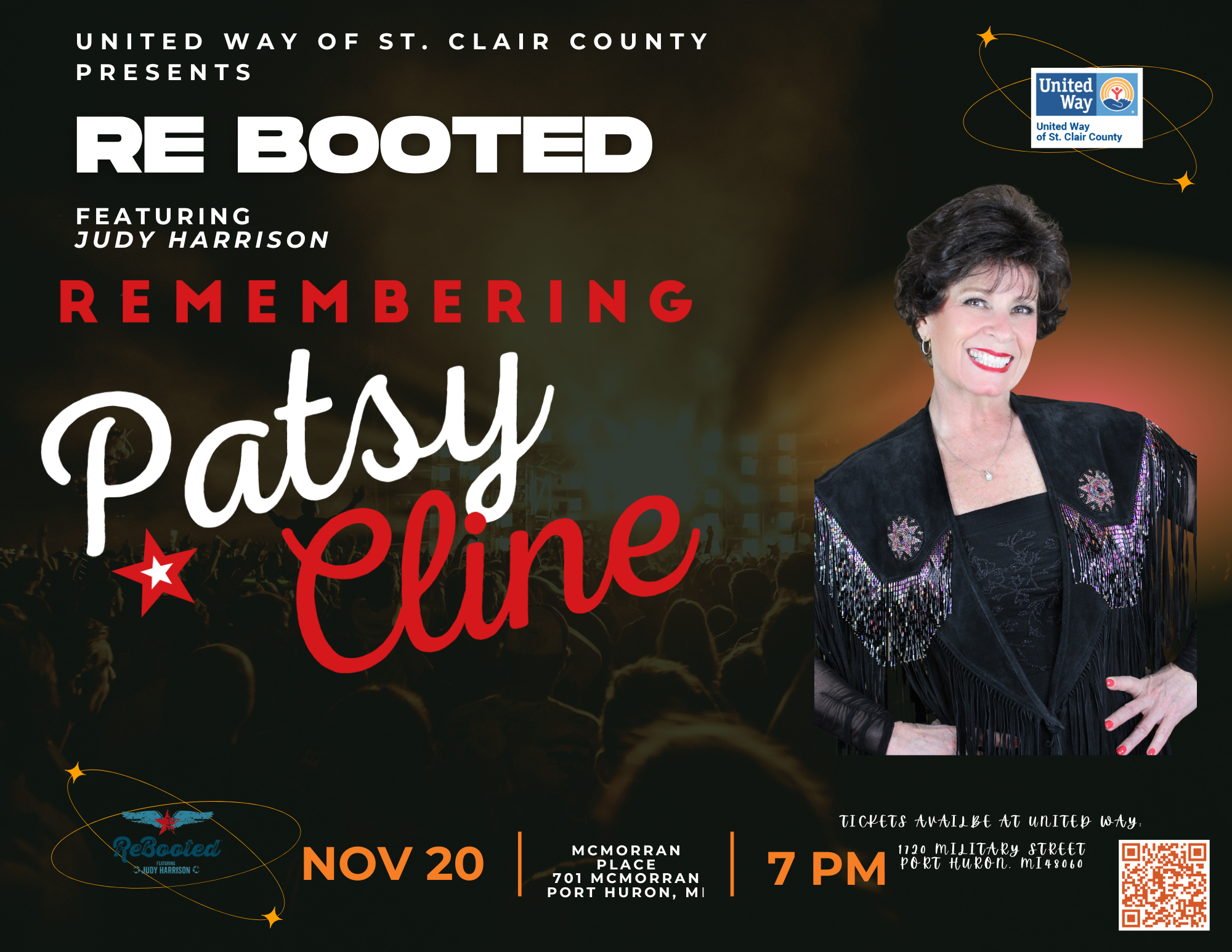 This Patsy Cline Tribute performance starring Judy Harrison by Rebooted will be held on Thursday, November 20th at McMorran Place.