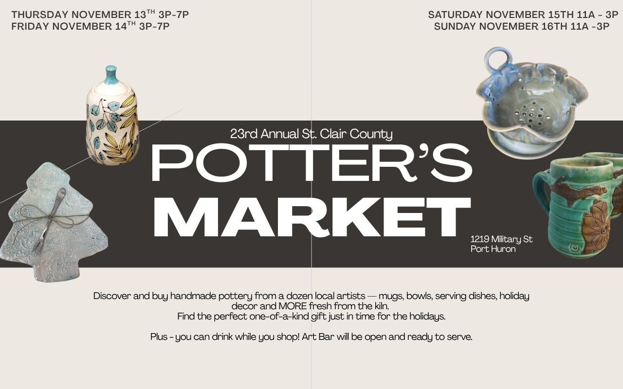 Local ceramic artistry takes center stage this week as the 23rd Annual St. Clair County Potters Market opens in Port Huron. The four-day event runs Thursday and Friday from 3–7 PM, and Saturday and Sunday from 11 AM–3 PM, welcoming art lovers, collectors, and holiday shoppers.